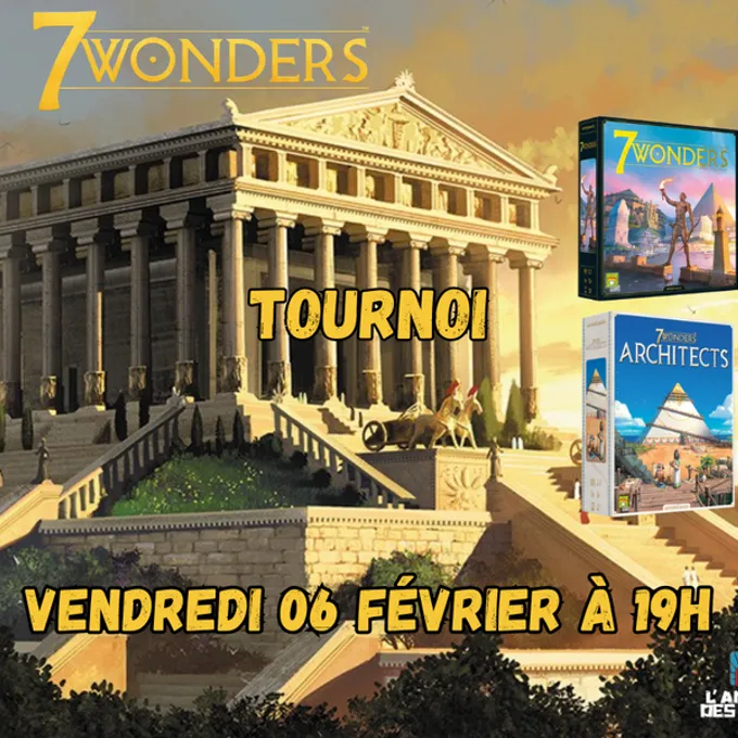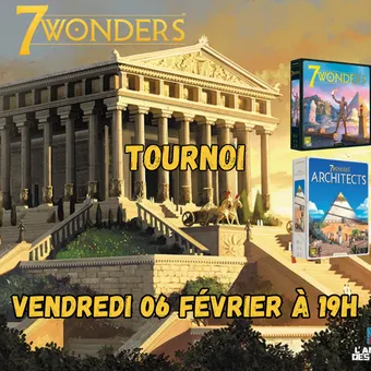This Friday, February 06, come and take part in a 7 Wonders and 7 Wonders Architects tournament, with prizes to be won, at 7pm at l'Antre!