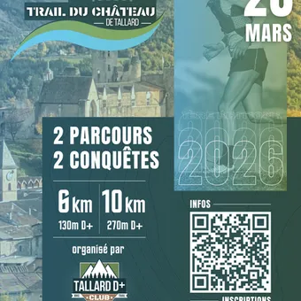The Trail du Château de Tallard invites you to the Parc de la Durance for two timed nature races at the foot of the castle: 10 km (270 m D+) and 6 km (130 m D+).